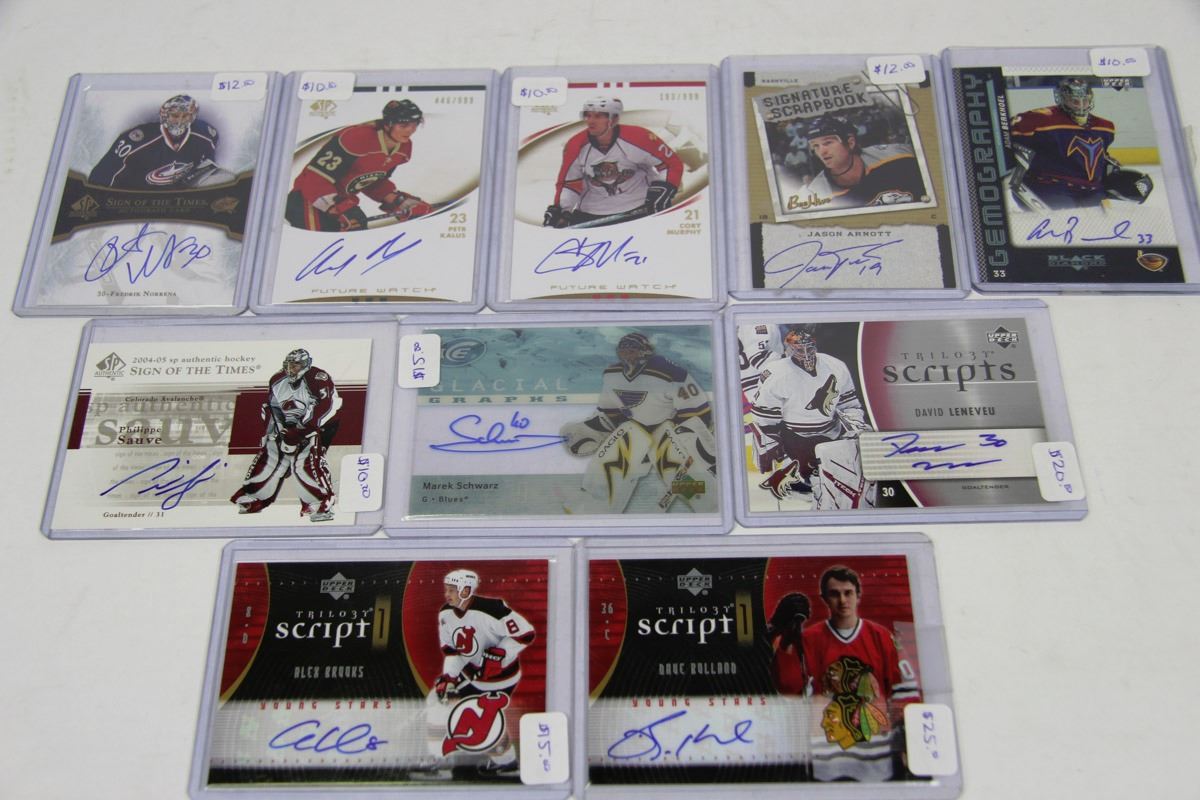 LOT OF 10 HOCKEY CARDS - AUTOS, ROOKIES& GOALIES