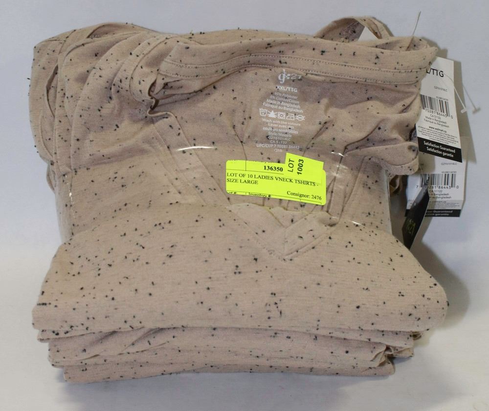 LOT OF 10 LADIES VNECK TSHIRTS - SIZE LARGE