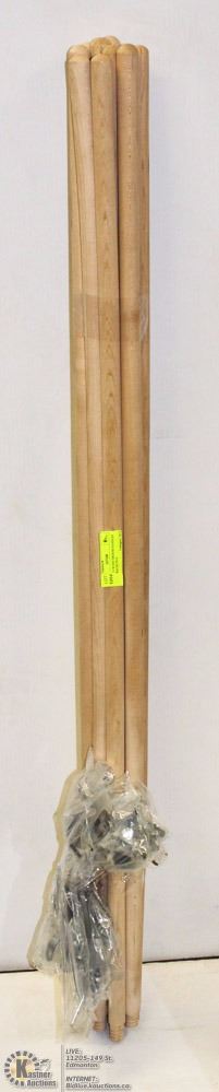 LOT OF 10 WOOD BROOM HANDLES WITH BRACKETS 4'