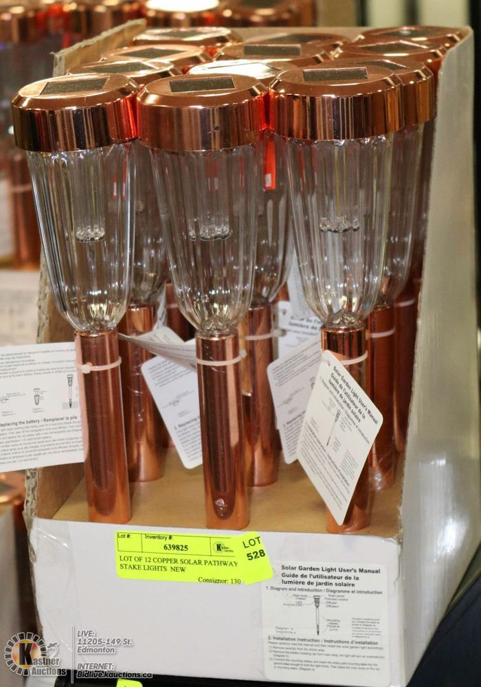LOT OF 12 COPPER SOLAR PATHWAY STAKE LIGHTS NEW