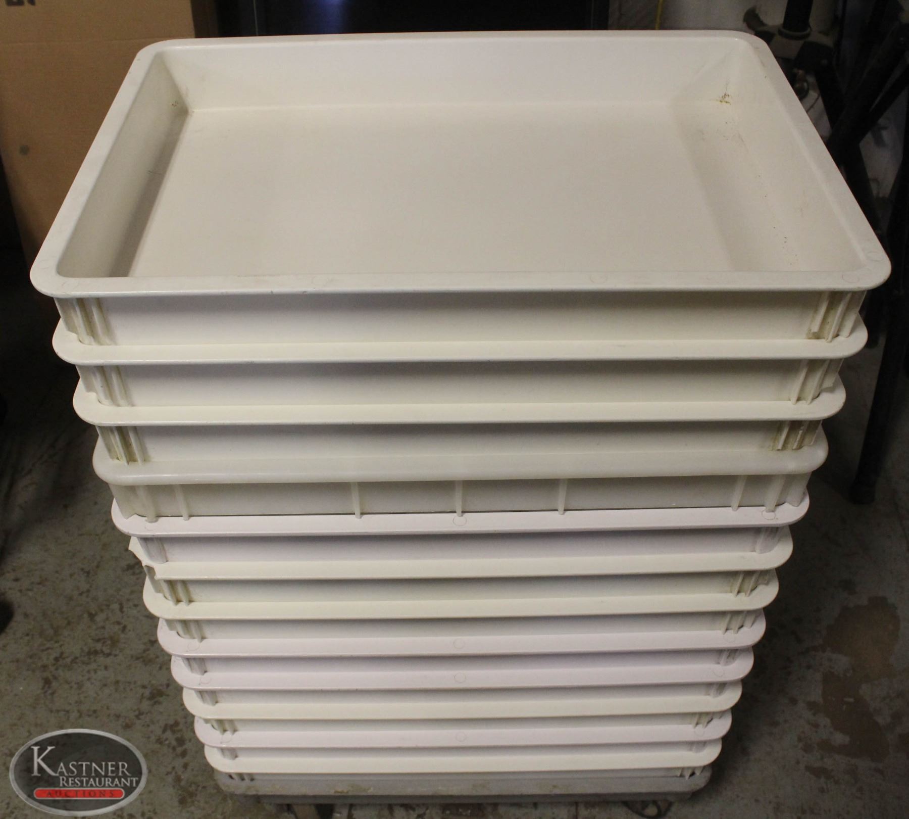 LOT OF 12 DOUGH BINS W/ DOLLY 16" X 24" X 2-3/4"