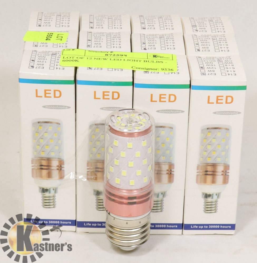 STANDARD HOME E26 BASE LED BULBS. ONE DOZEN IN TOTAL. 65W EQUIVALENT BRIGHTNESS. 60 LED'S PER BULB. 6000K COOL WHITE. AC85-265V, 30000HRS LIFE EXPECTANCY. POWER USAGE 12W