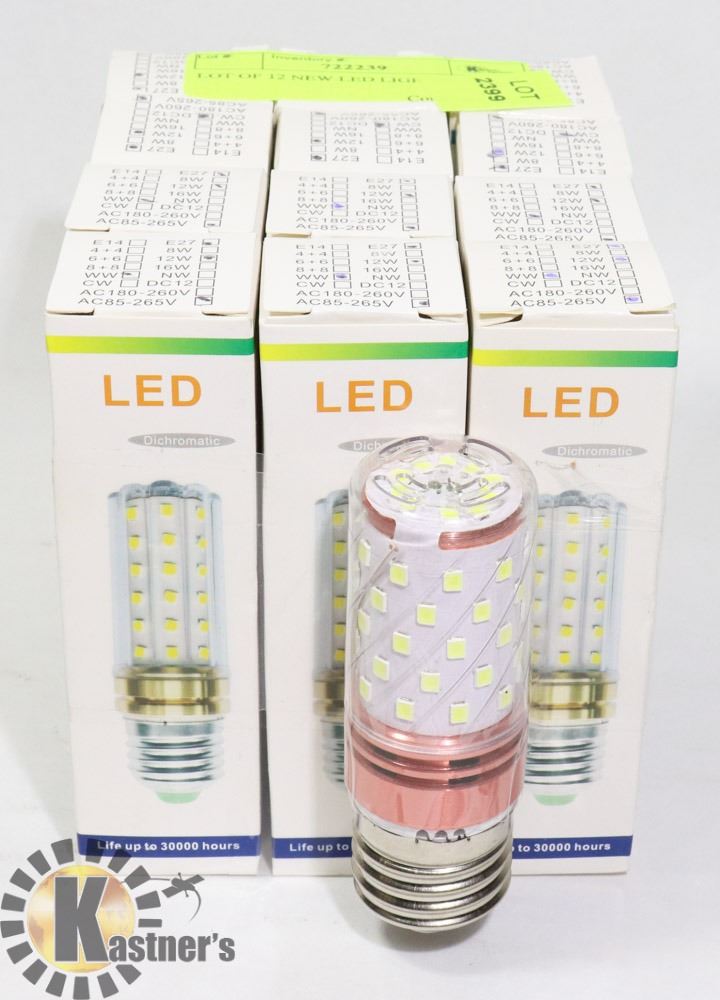 STANDARD HOME E26 BASE LED BULBS. ONE DOZEN IN TOTAL. (6 WARM WHITE & 6 COOL WHITE) 65W EQUIVALENT BRIGHTNESS. 60 LED'S PER BULB. AC85-265V, 30000HRS LIFE EXPECTANCY. POWER USAGE 12W - GENERAL