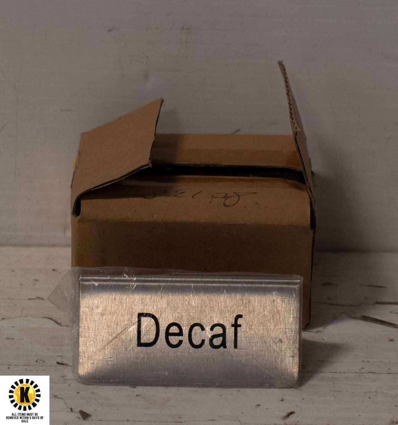 LOT OF 12 NEW OMCAN 3" STAINLESS STEEL DECAF SIGNS