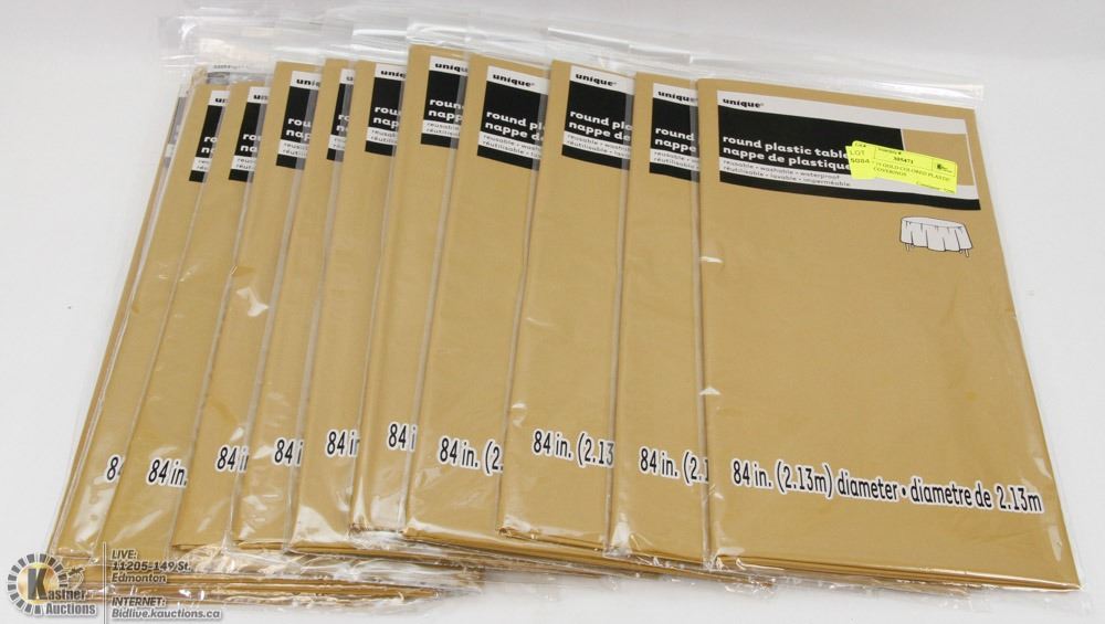 LOT OF 15 GOLD COLORED PLASTIC TABLE COVERINGS