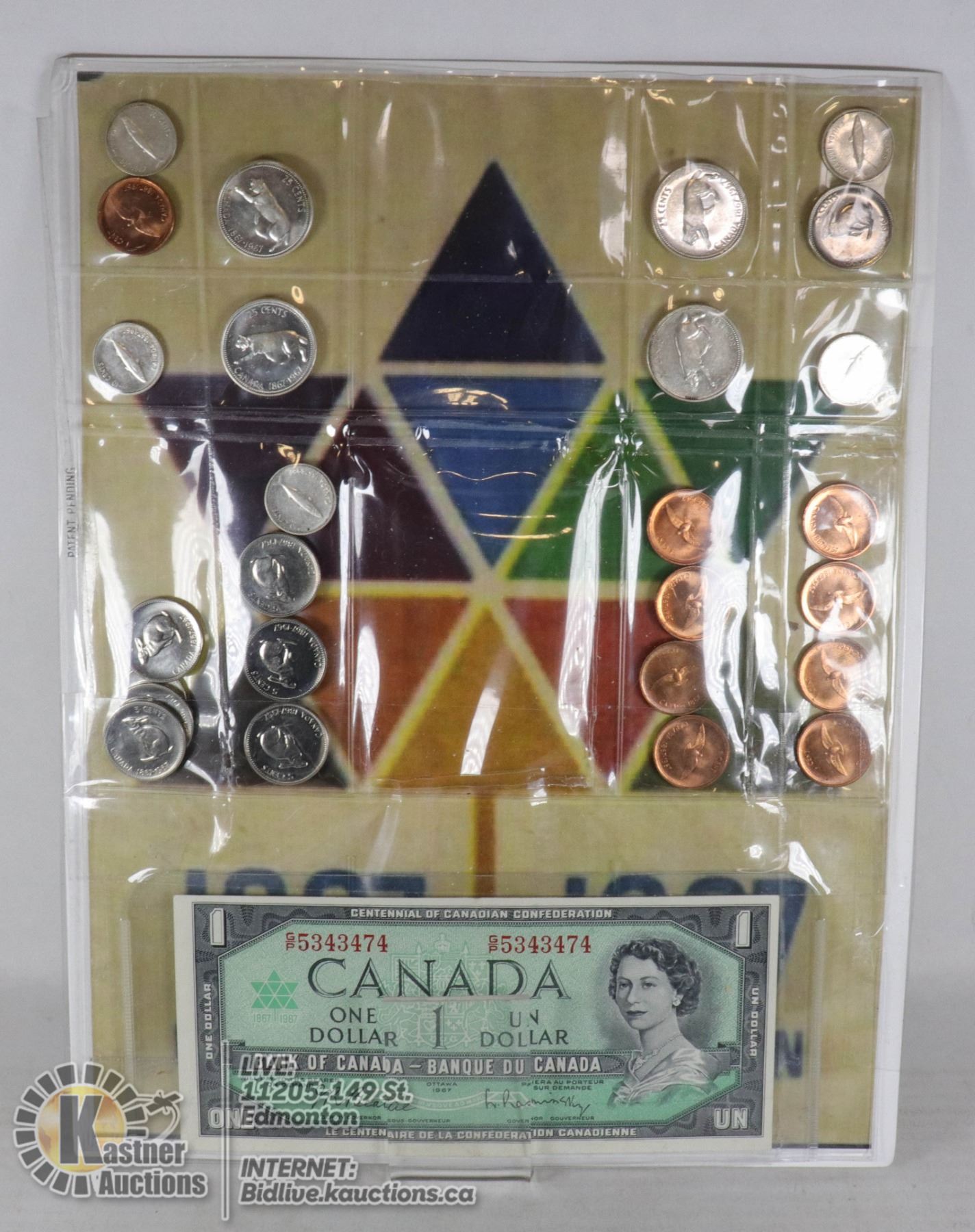 CENTENNIAL CURRENCY. 1967 PROOFLIKE $.01, $.05, $.10, $.25, $1.00, + A CRISP UNCIRCULATED 1967 G/P SERIES BEATTIE RAMINSKY$1.00 BILL,