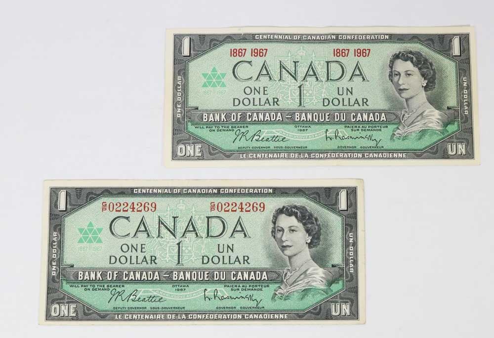 CANADIAN ONE WITH SERIAL # ONE WITHOUT, CURRENCY