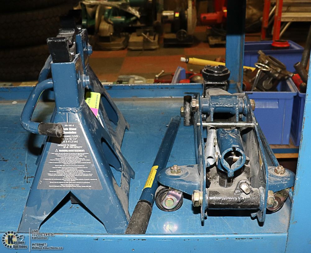 LOT OF 2 2 TON AXLE STANDS WITH FLOOR JACK