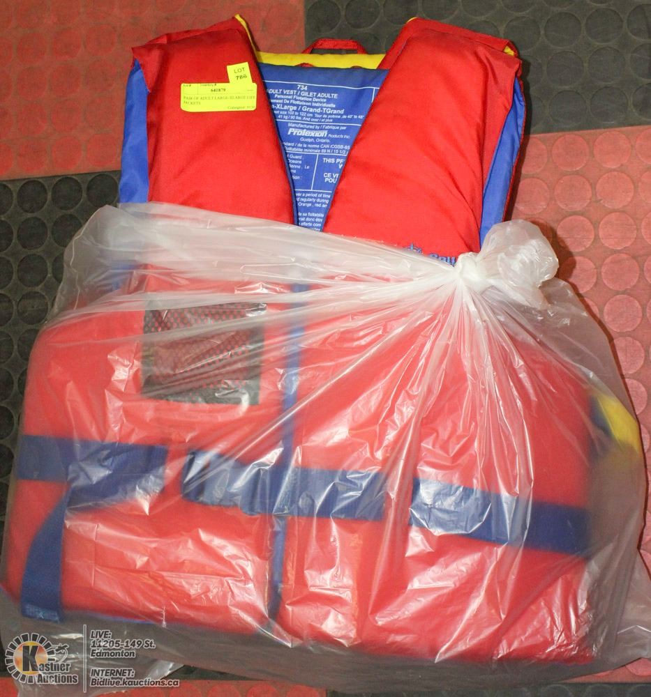 LOT OF 2 ADULT LIFE JACKETS, 1 LARGE & 1 XLARGE