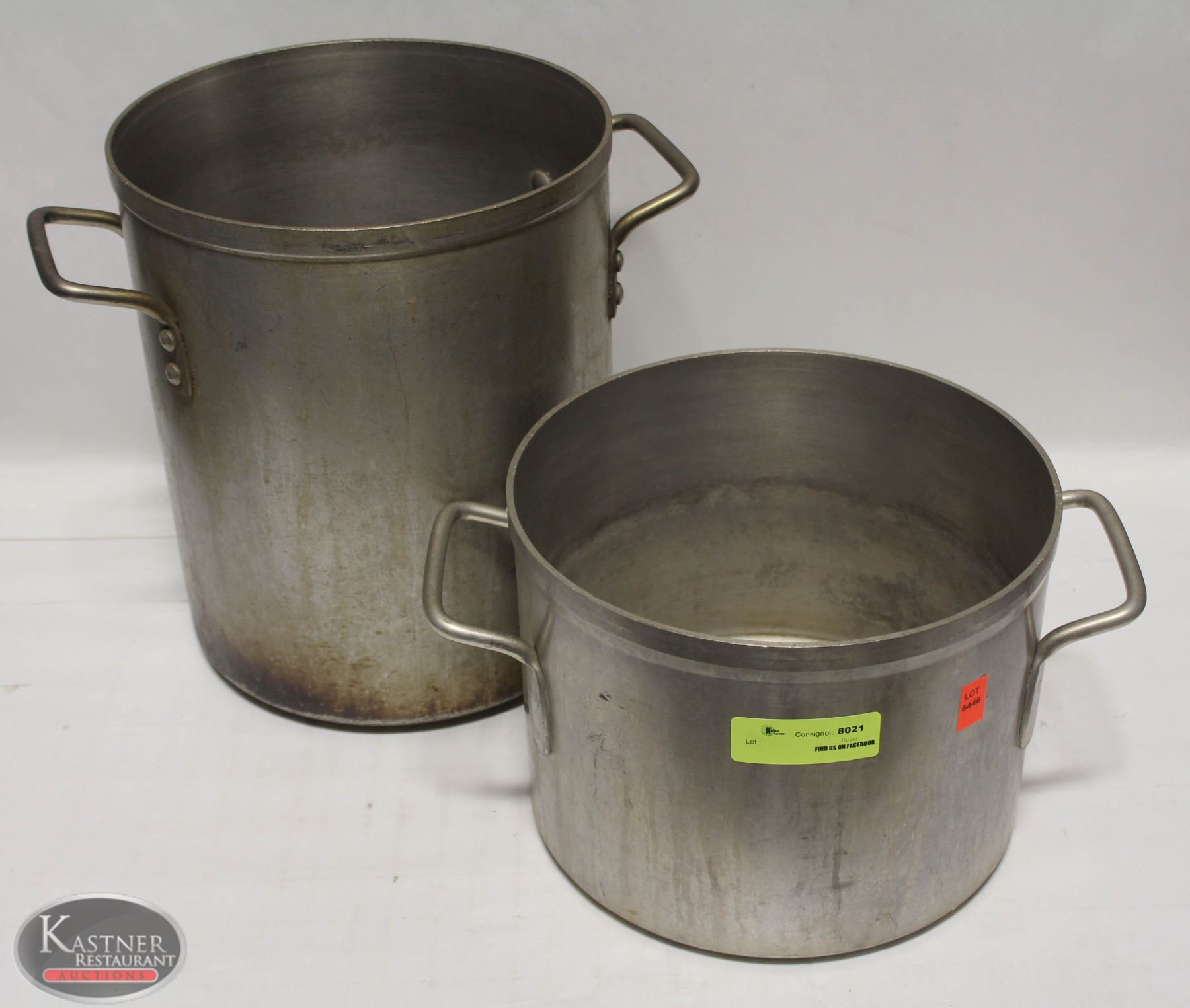 LOT OF 2 ALUMINUM STOCK POTS. APPROX. 10QT & 20QT