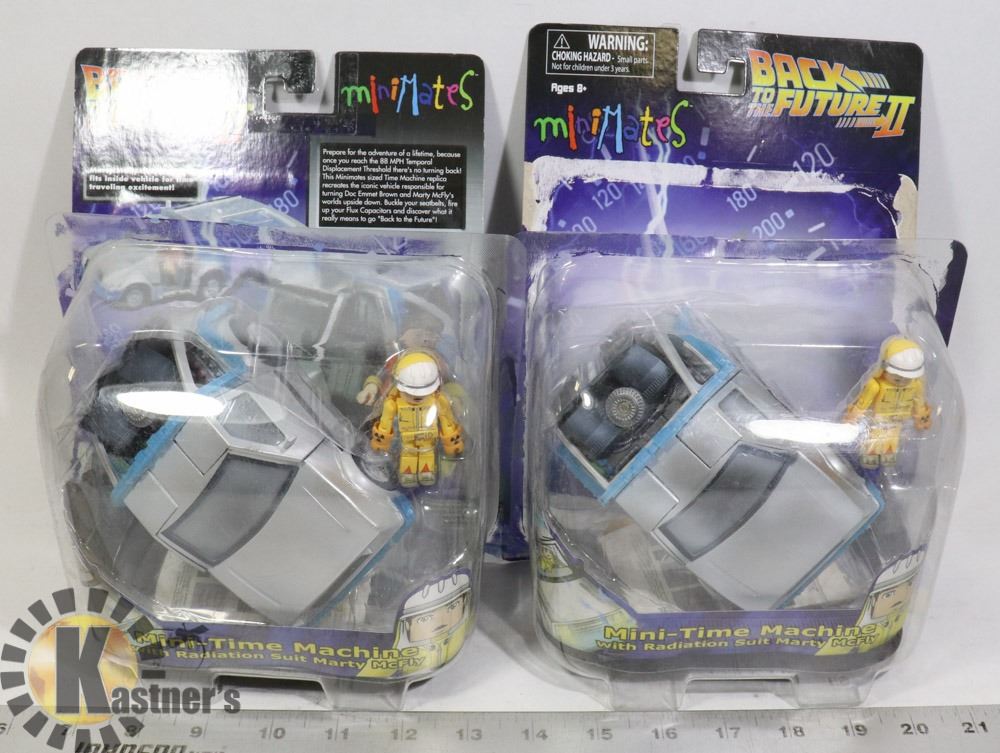 LOT OF 2 BACK TO THE FUTURE DELOREANS W MARTY