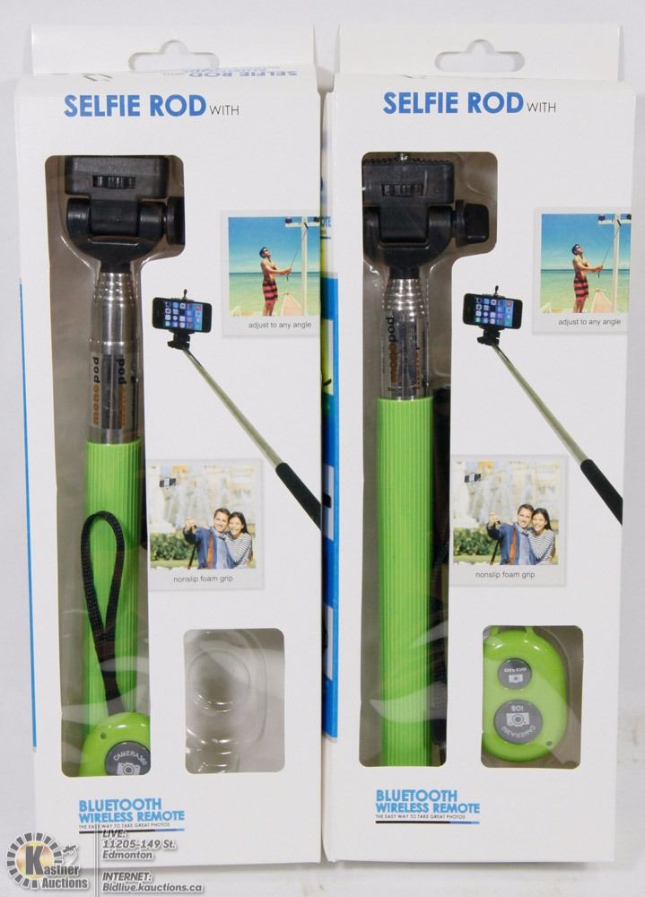 LOT OF 2 BLUE TOOTH WIRELESS REMOTE SELFIE RODS.