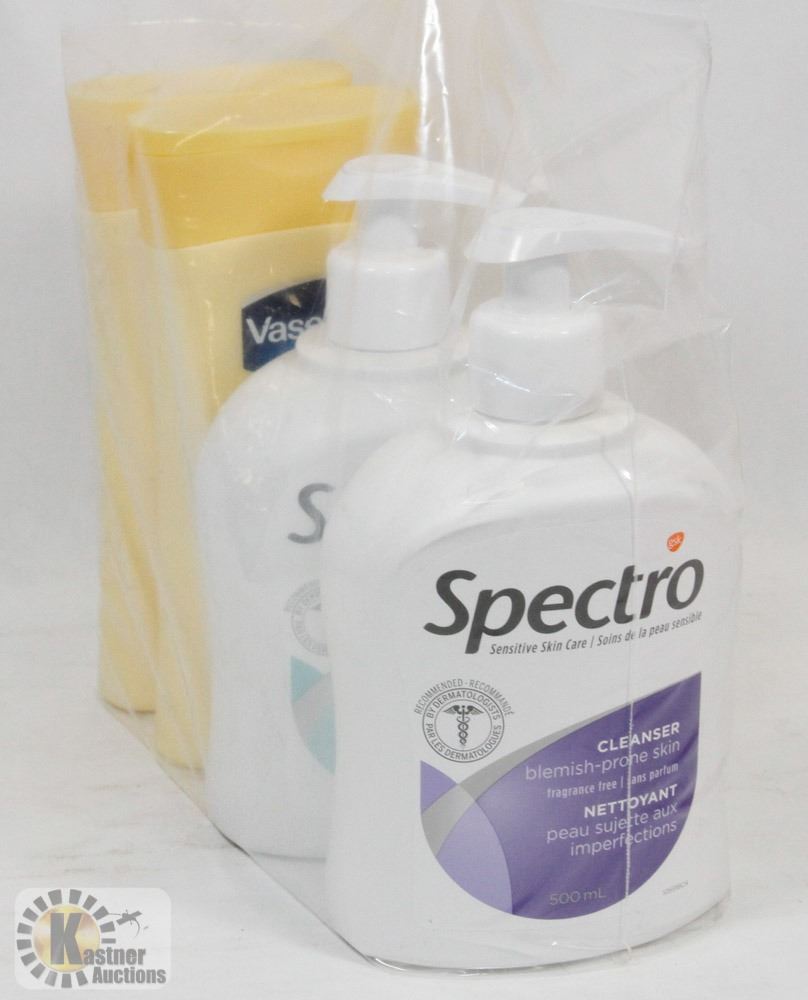 LOT OF 2 BOTTLES OF SPECTRO CLEANSER,2 VASELINE