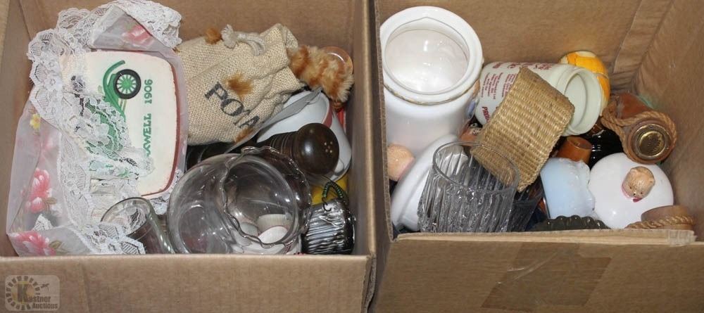 LOT OF 2 BOXES OF ASSORTED PORCELAIN & GLASS ITEMS