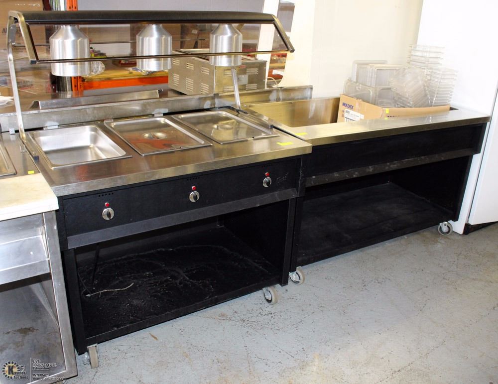 HOT STATION INCLUDES BASE & UPPER HEAT LAMP DIMENSIONS 35"H X 45"W X 29"D, SNEEZE GUARD 58" HIGH COLD STATION DIMENSIONS 35"H X 59"W X 29"D