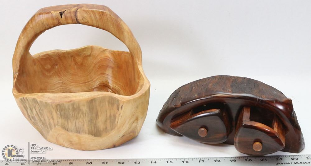 LOT OF 2 CARVED BURL WOOD PIECES.