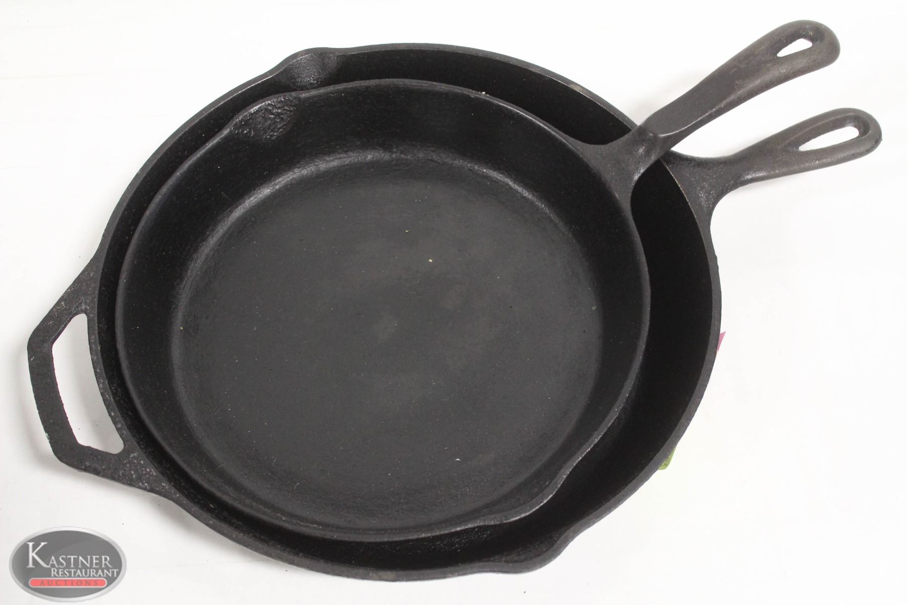LOT OF 2 CAST IRON FRYING PANS. 10" & 12"