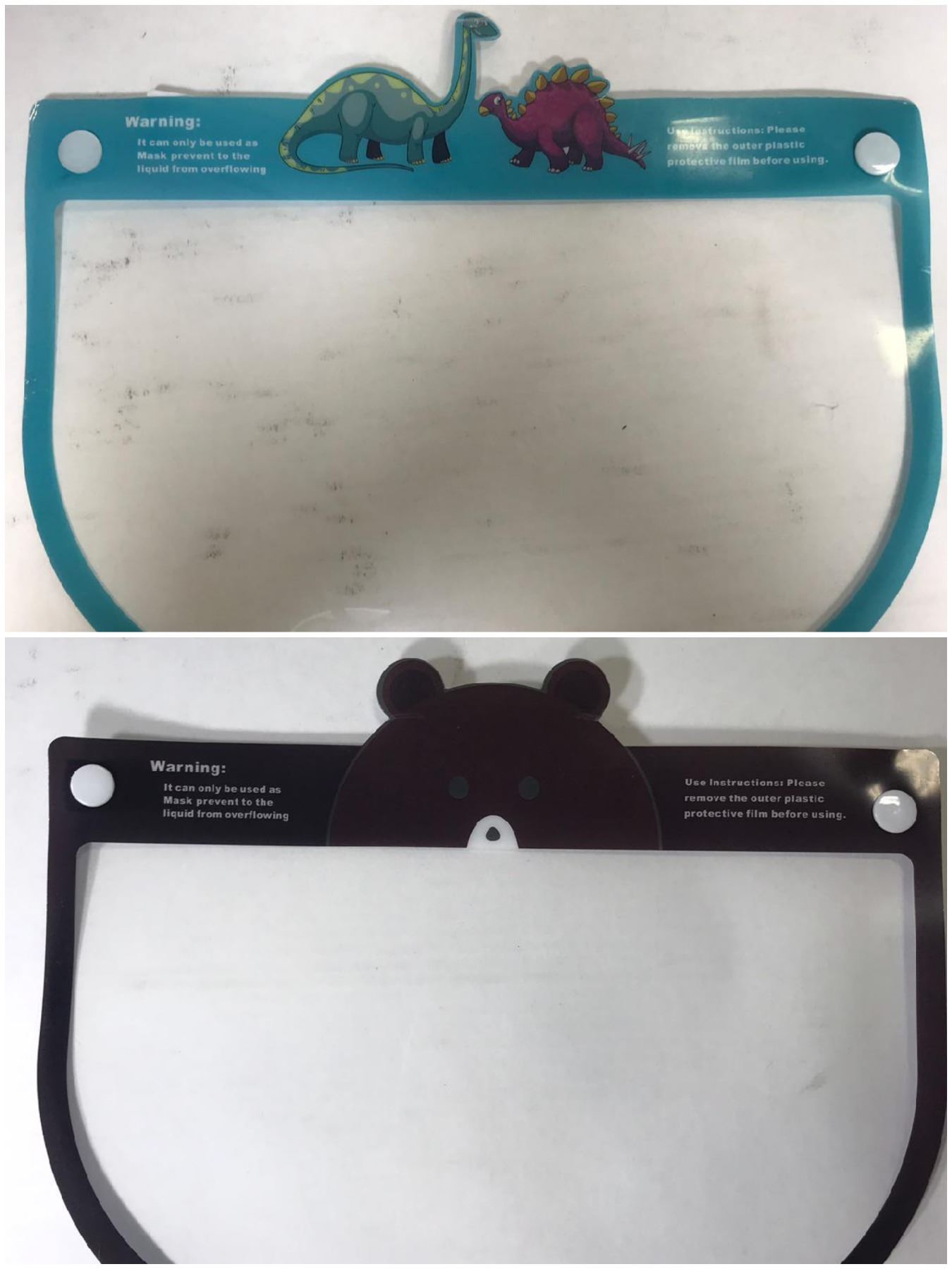 LOT OF 2 CHILDRENS FACE SHIELDS, (1 DINOSAUR & 1
