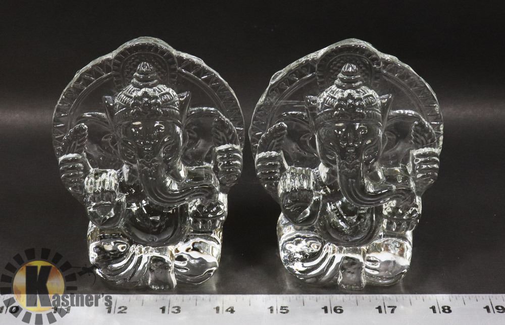 LOT OF 2 CRYSTAL INDIAN RELIGIOUS ELEPHANT FIGURES