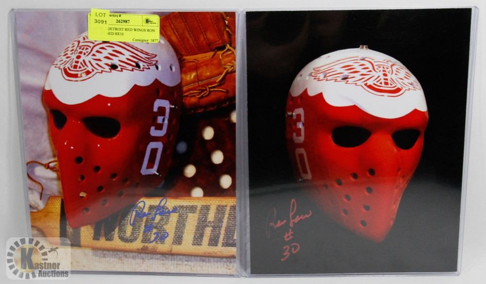 LOT OF 2 DETROIT RED WINGS RON LOW SIGNED 8X10