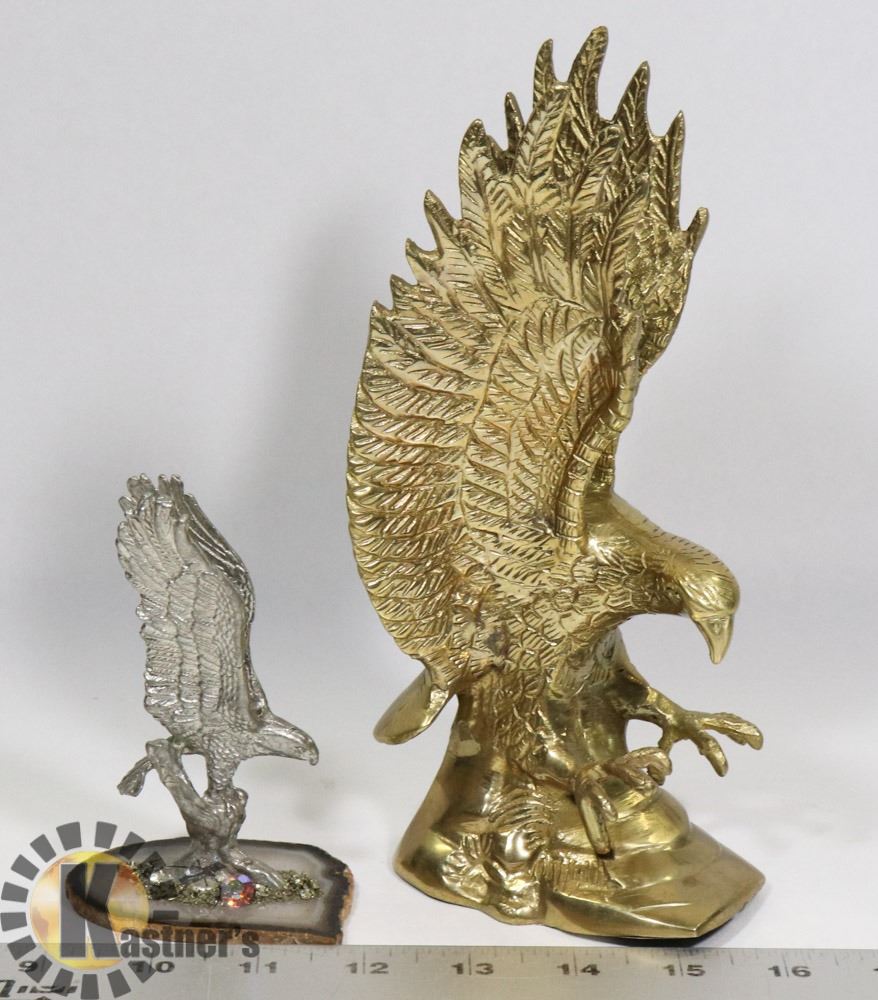 LOT OF 2 EAGLE STATUES ONE BRASS ONE ON GEODE BASE