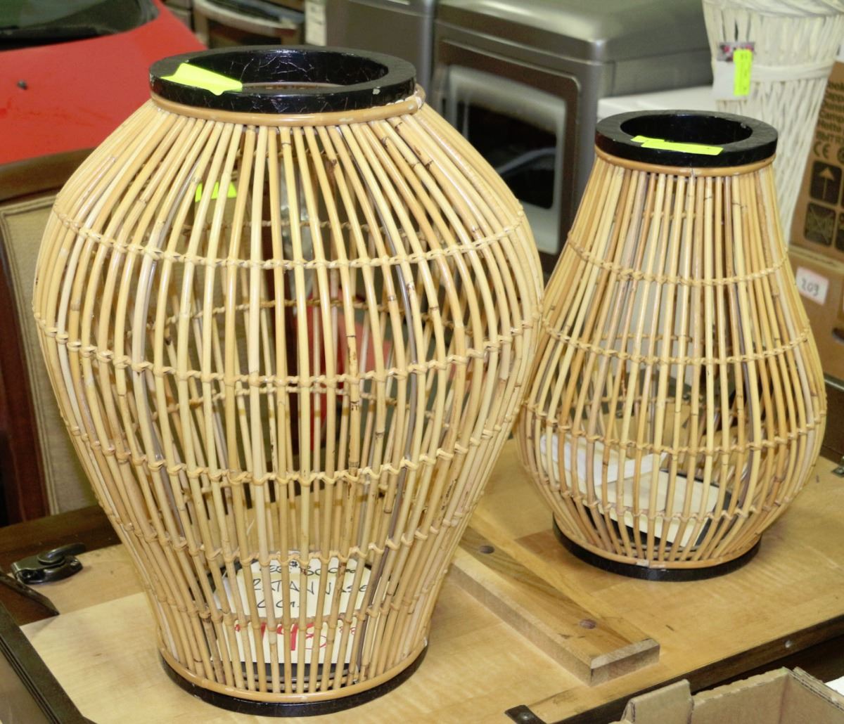 LOT OF 2 ETHAN ALLEN WICKER DECORATIVE VASES