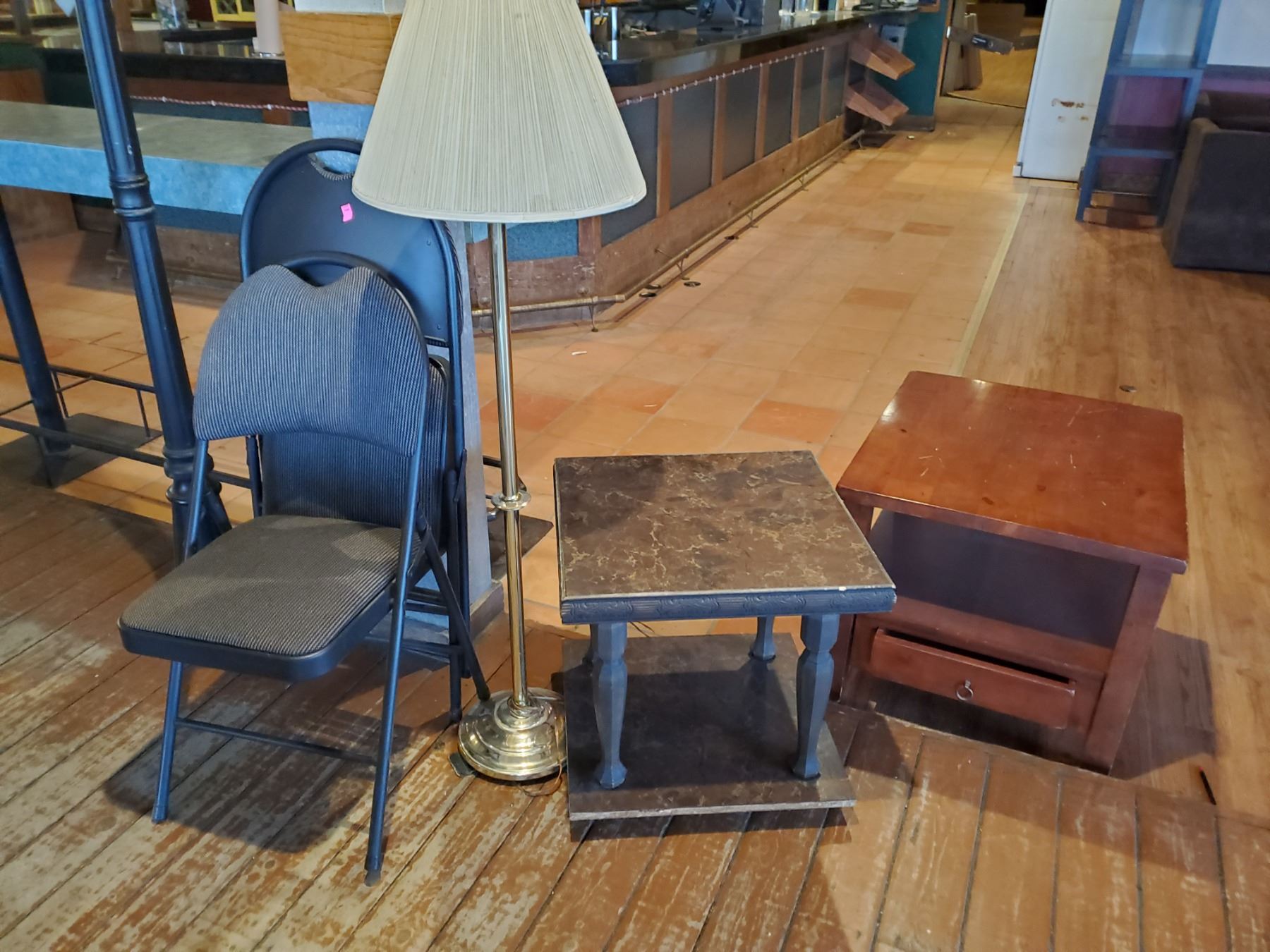 LOT OF 2 FOLDING CHAIRS, SIDE TABLE AND FLOOR LAMP