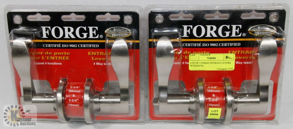 LOT OF 2 FORGE ENTRANCE LEVERS WITH KEYS.