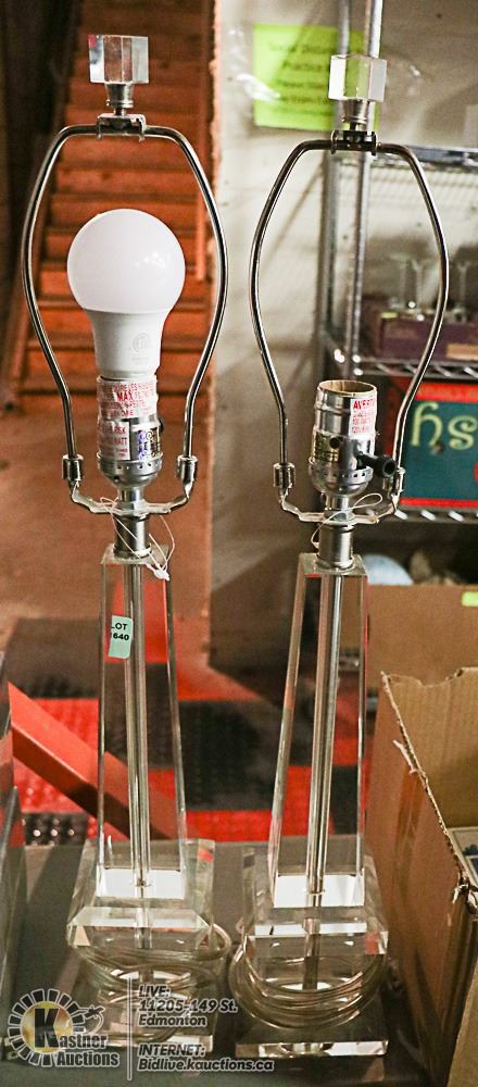 LOT OF 2 GLASS LAMPS NO SHADES