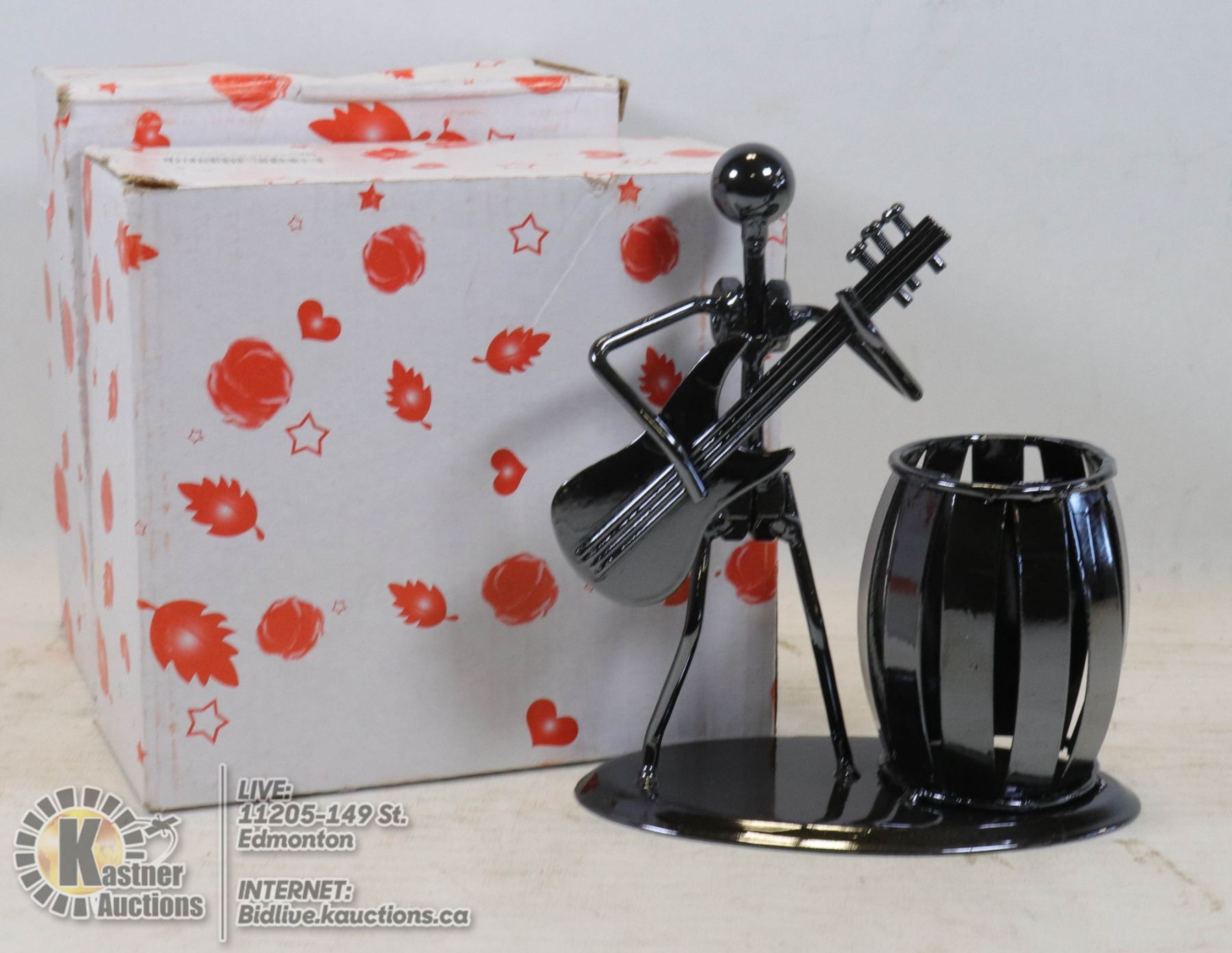 LOT OF 2 GUITAR PLAYING MAN METAL PEN HOLDER