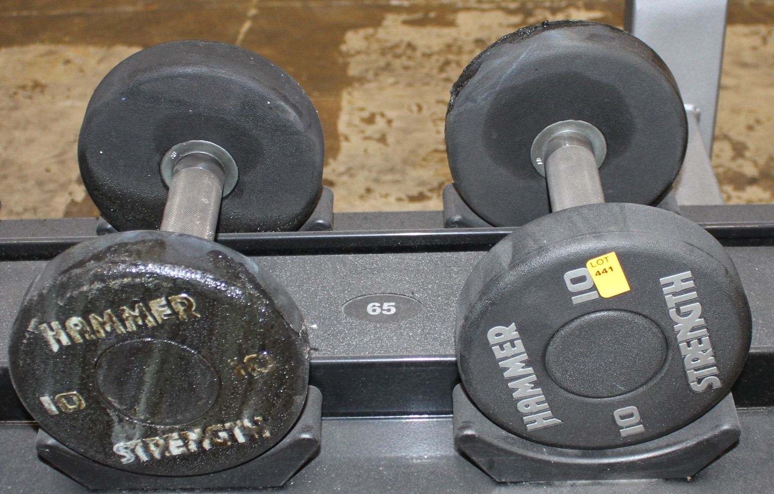 LOT OF 2 HAMMER STRENGTH 10LB DUMBELLS