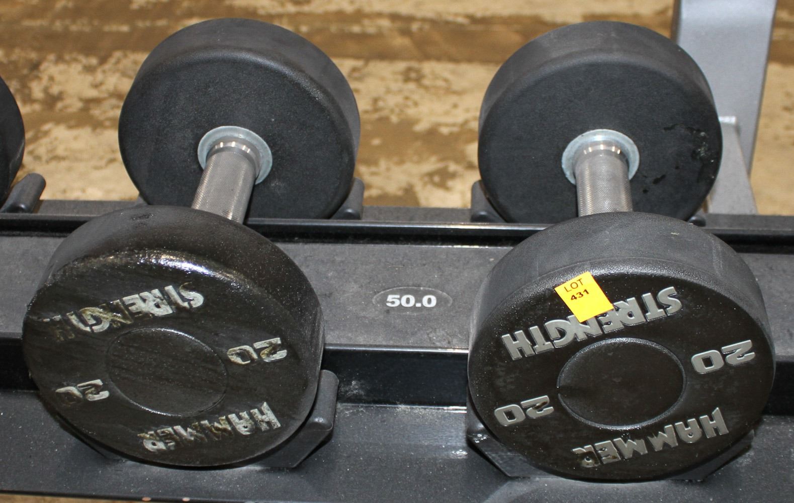 LOT OF 2 HAMMER STRENGTH 20LB DUMBELLS