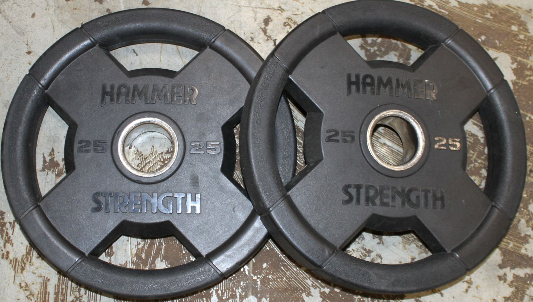 LOT OF 2 HAMMER STRENGTH 25LB FREE WEIGHTS