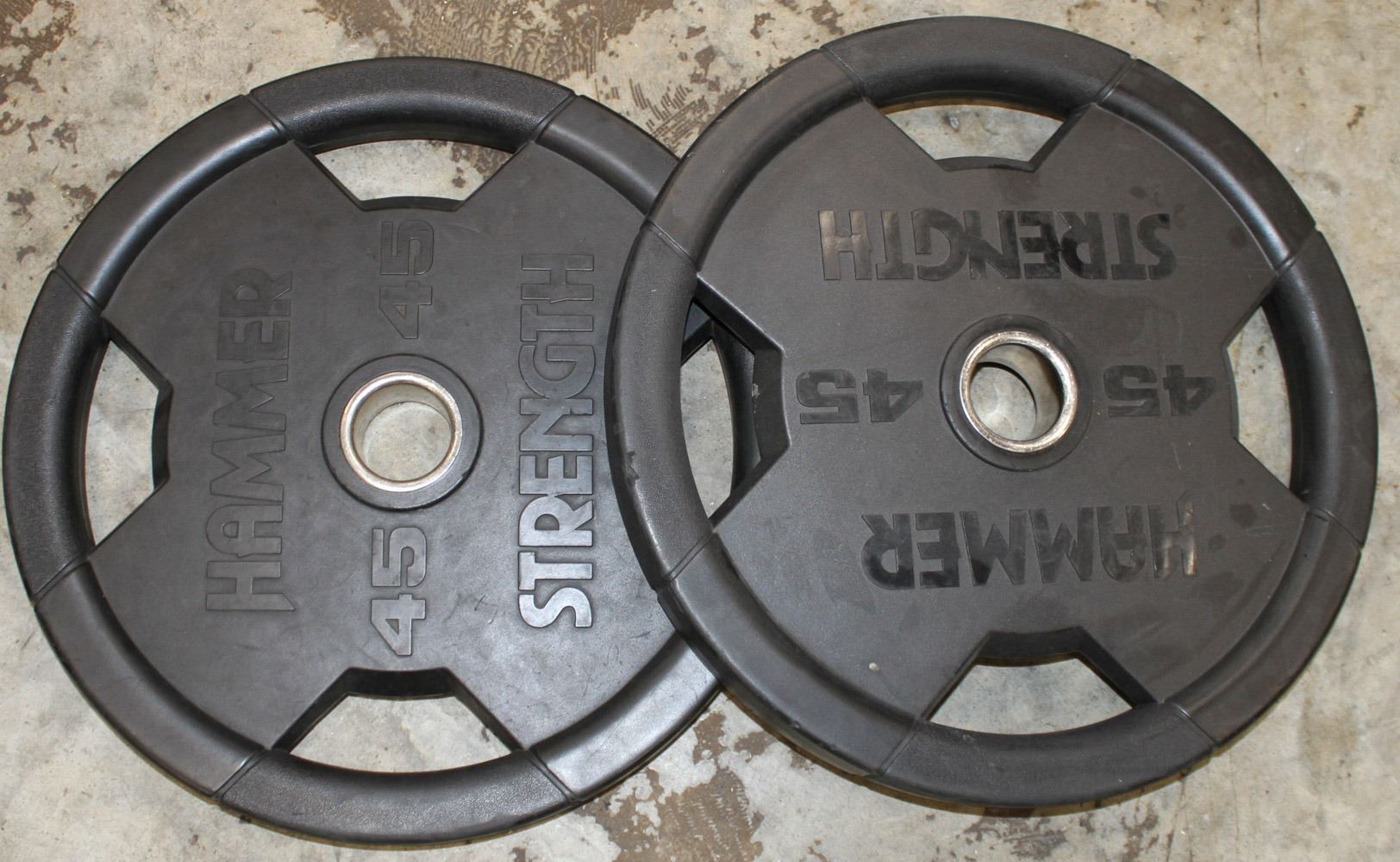 LOT OF 2 HAMMER STRENGTH 45LB FREE WEIGHTS