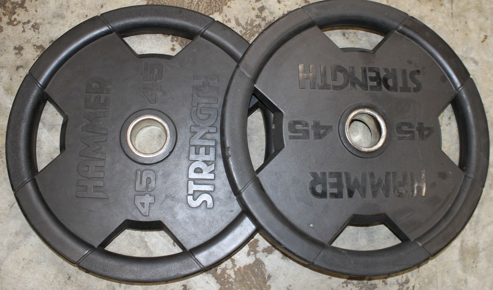 LOT OF 2 HAMMER STRENGTH 45LB FREE WEIGHTS