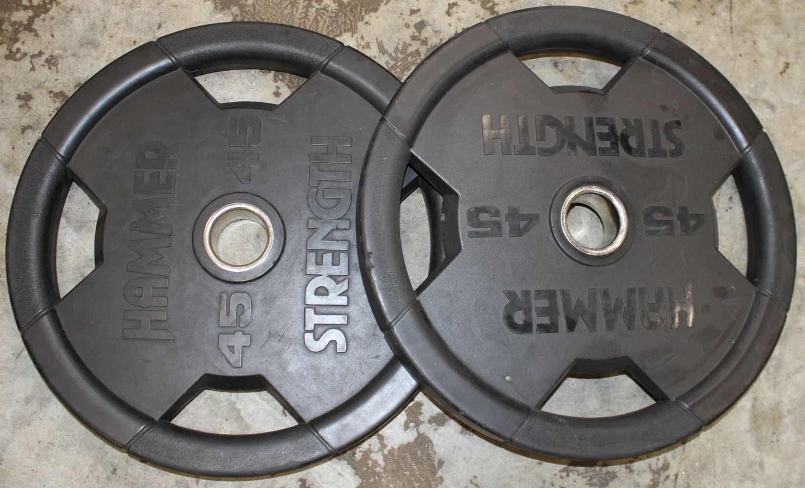 LOT OF 2 HAMMER STRENGTH 45LB FREE WEIGHTS