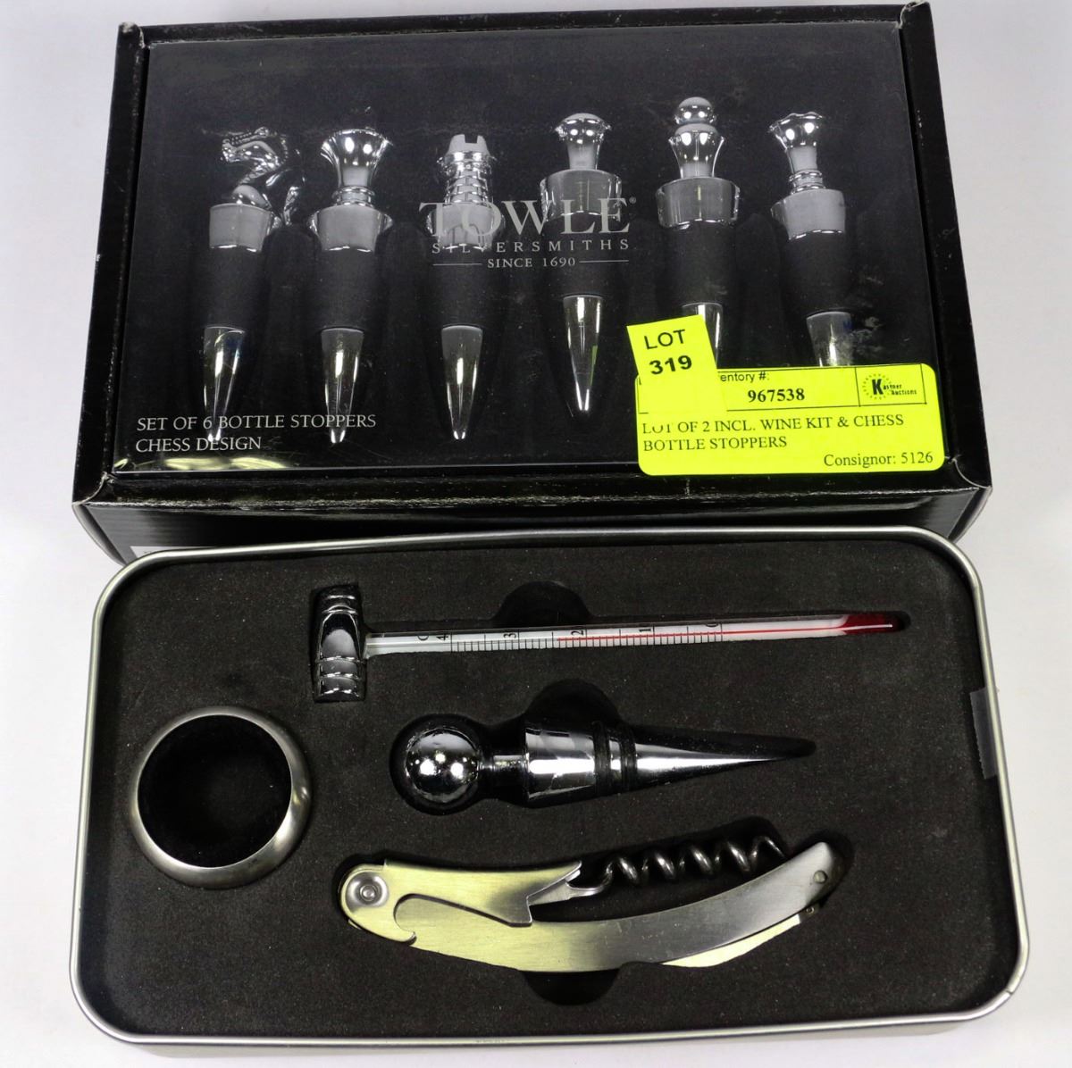 LOT OF 2 INCL. WINE KIT & CHESS BOTTLE STOPPERS