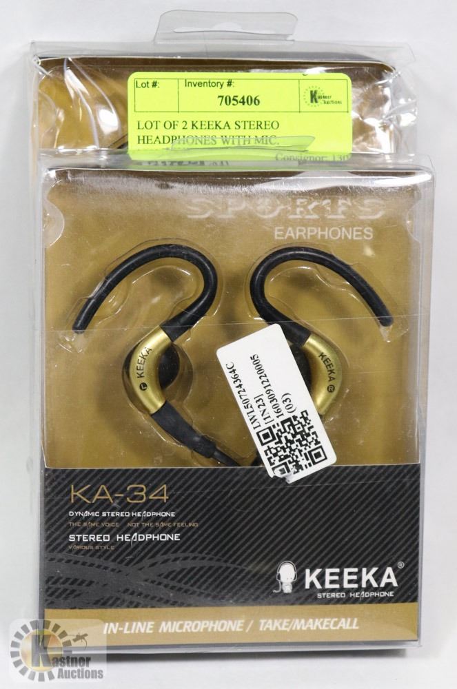 LOT OF 2 KEEKA STEREO HEADPHONES WITH MIC.