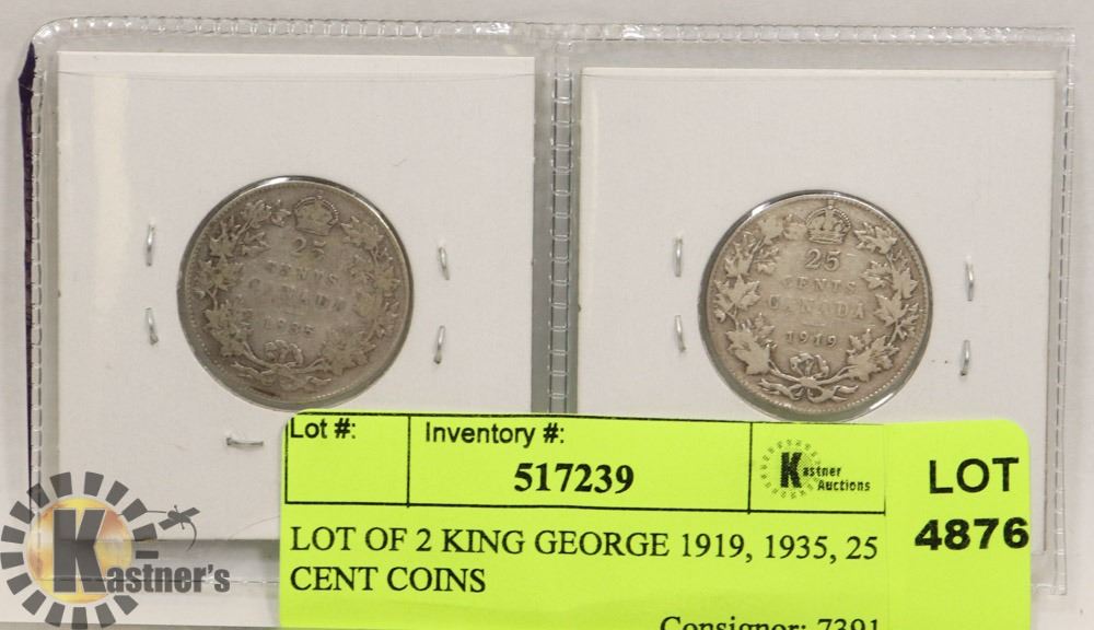 LOT OF 2 KING GEORGE 1919, 1935, 25 CENT COINS