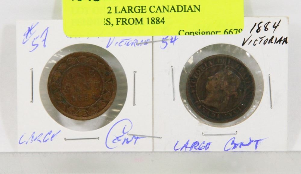 LOT OF 2 LARGE CANADIAN PENNIES, FROM 1884