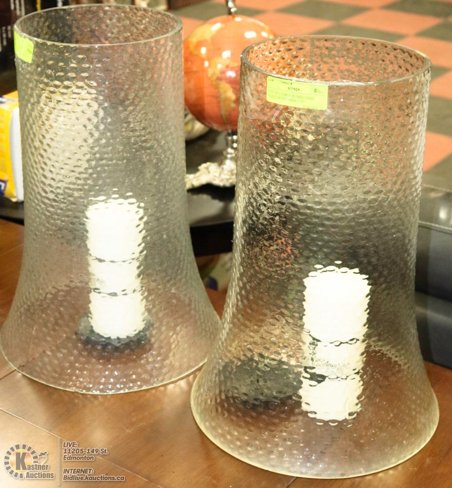 LOT OF 2 LARGE HURRICANE GLASS WITH CANDLE 17"