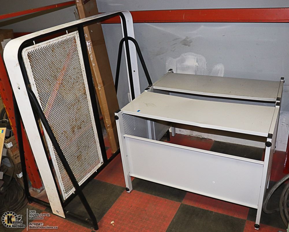 LOT OF 2 METAL DESKS, SOLD WITH METAL DIVIDER