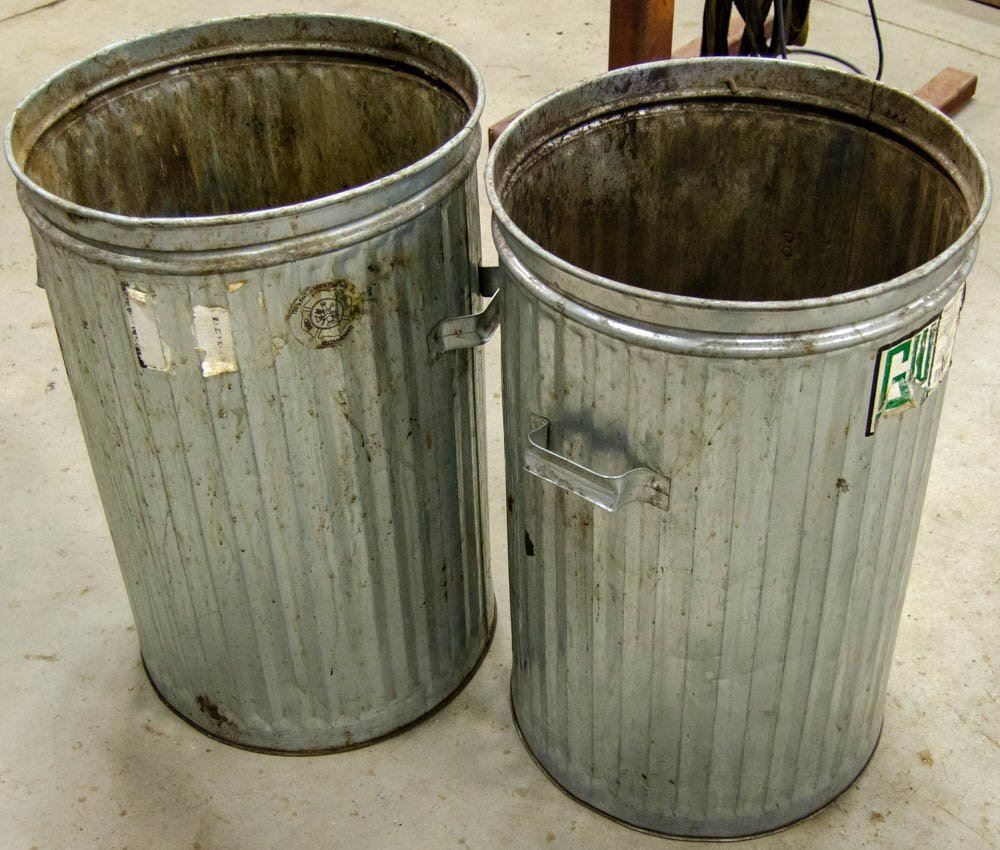LOT OF 2 METAL TRASH CANS W/ LIDS
