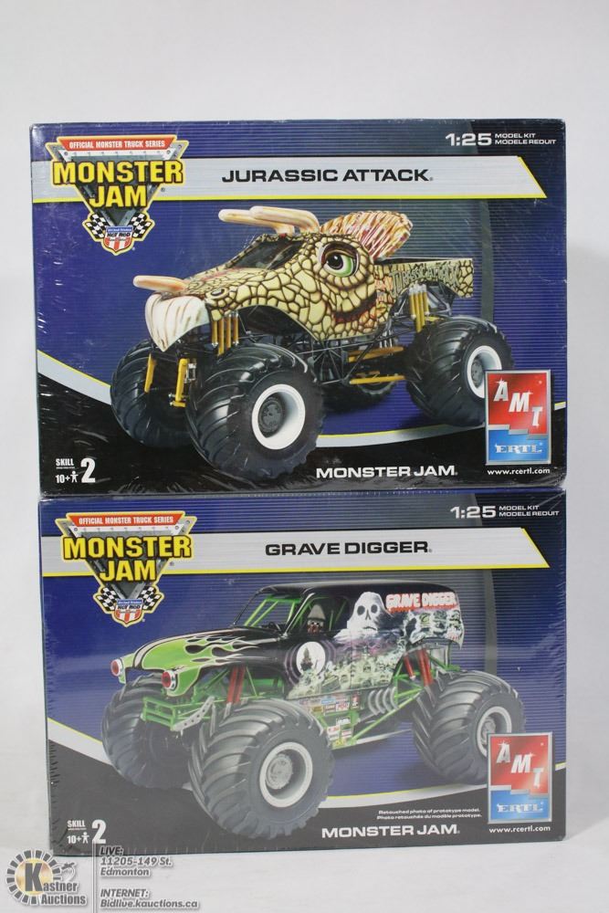 LOT OF 2 MONSTER JAM MONSTER TRUCKS INCL GRAVE