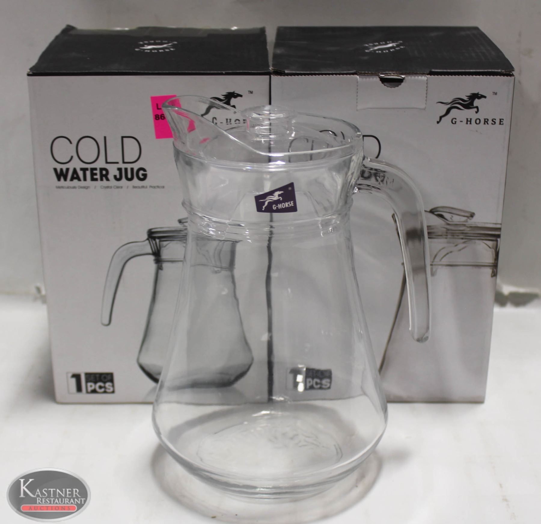 LOT OF 2 NEW 1200ML GLASS PITCHERS W/ LIDS