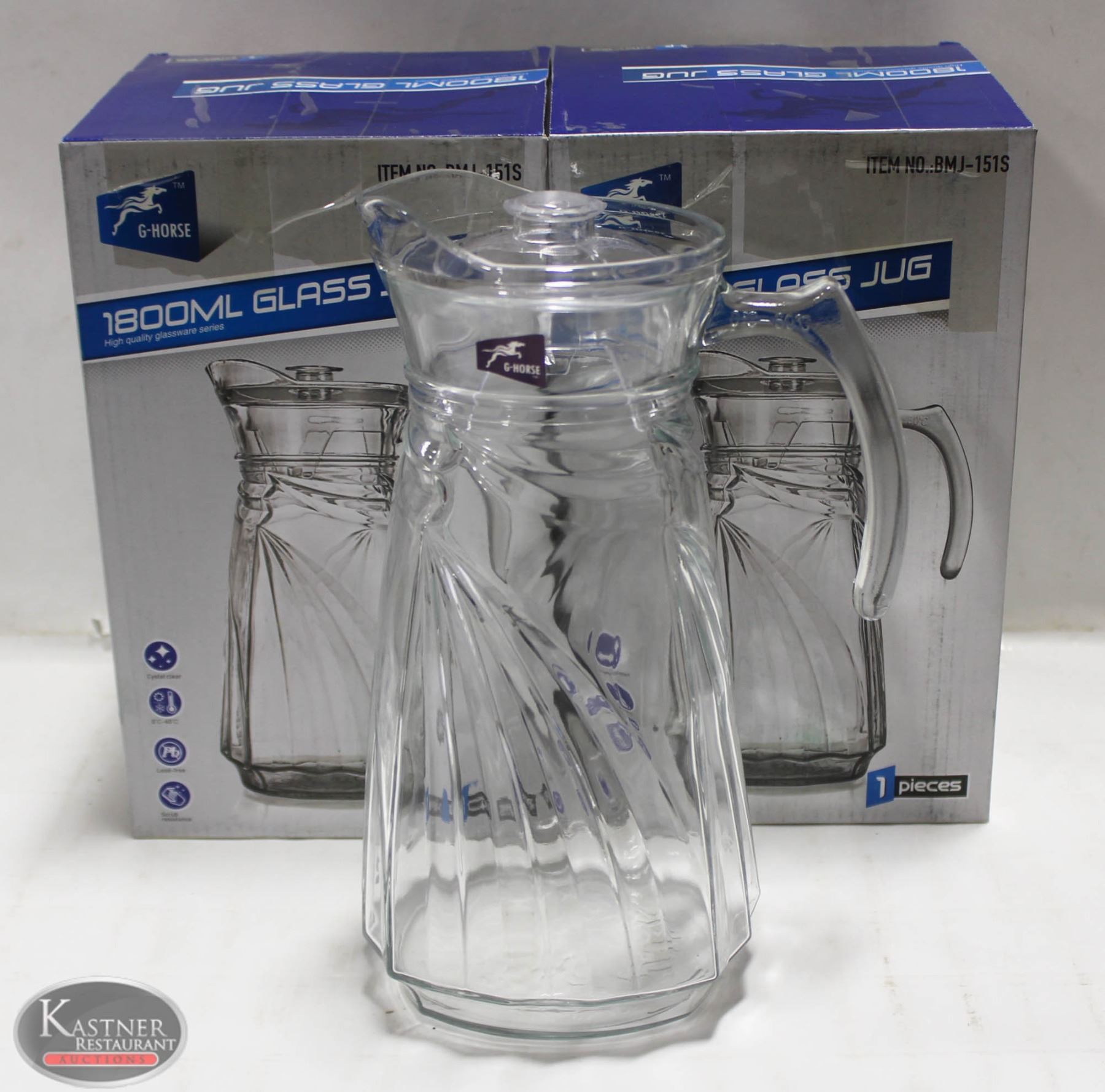 LOT OF 2 NEW 1800ML GLASS PITCHERS W/ LIDS