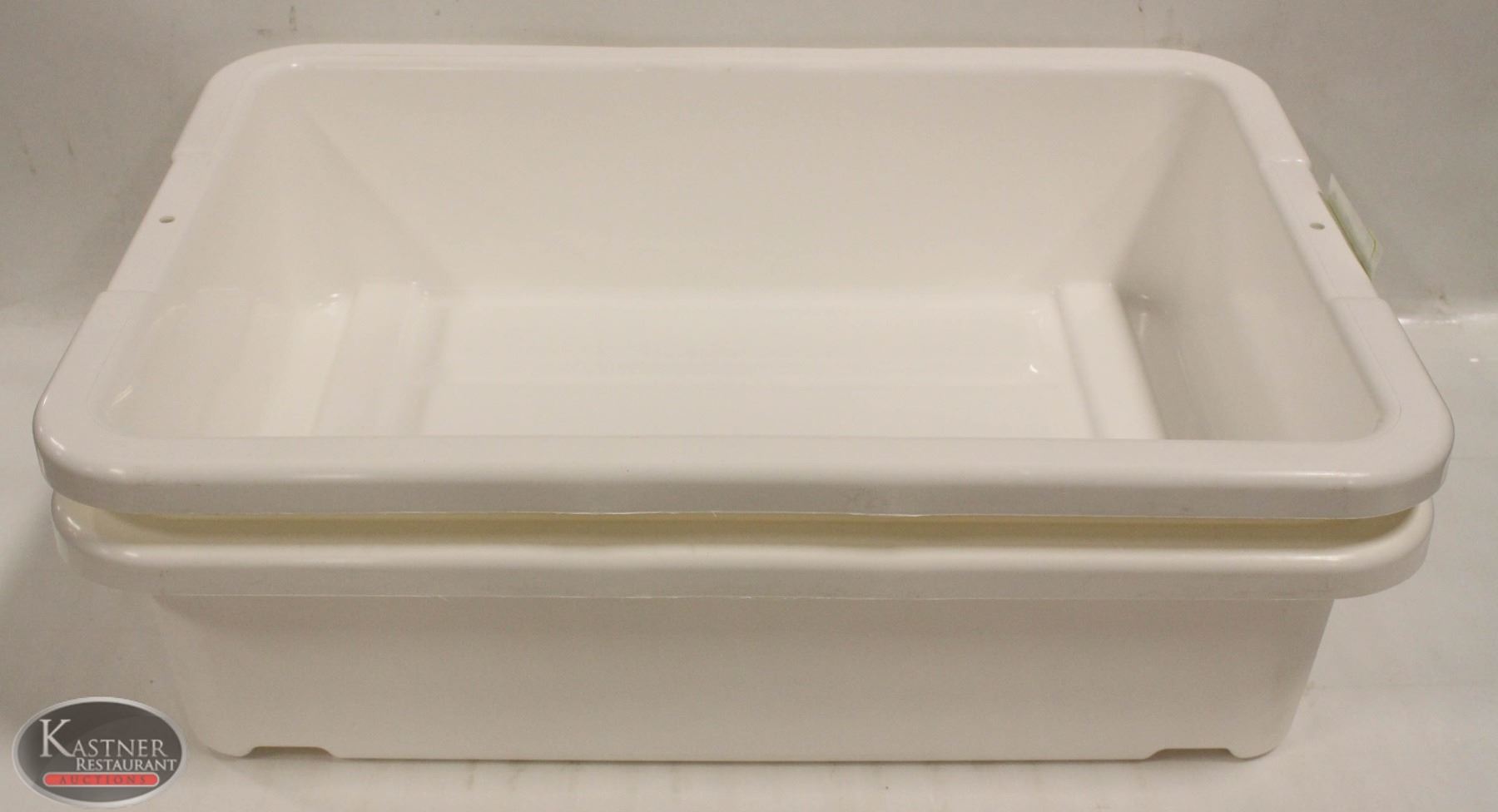 LOT OF 2 NEW 5" DEEP WHITE TOTE BOXES / BUS PANS
