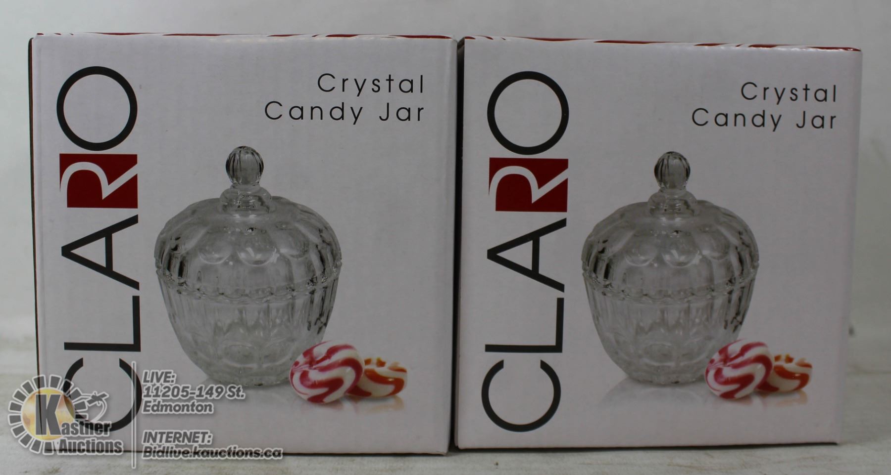 LOT OF 2 NEW CLARO CRYSTAL CANDY JARS