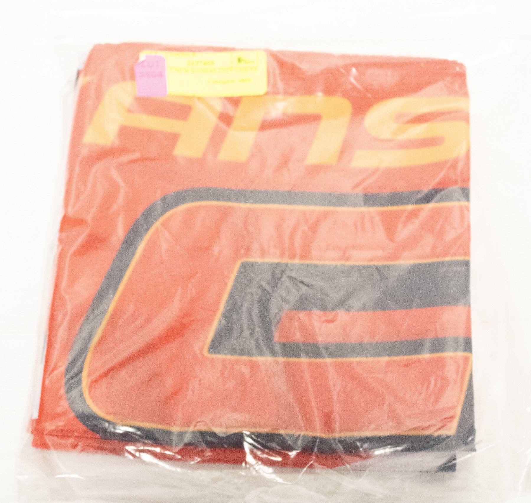 3 X 5 FEET EACH, ARROWHEAD LOGO ON RED BACKGROUND, AND HELMET WITH MULTIPLE LOGOS AND KANSAS CITY CHIEFS ACROSS THE TOP