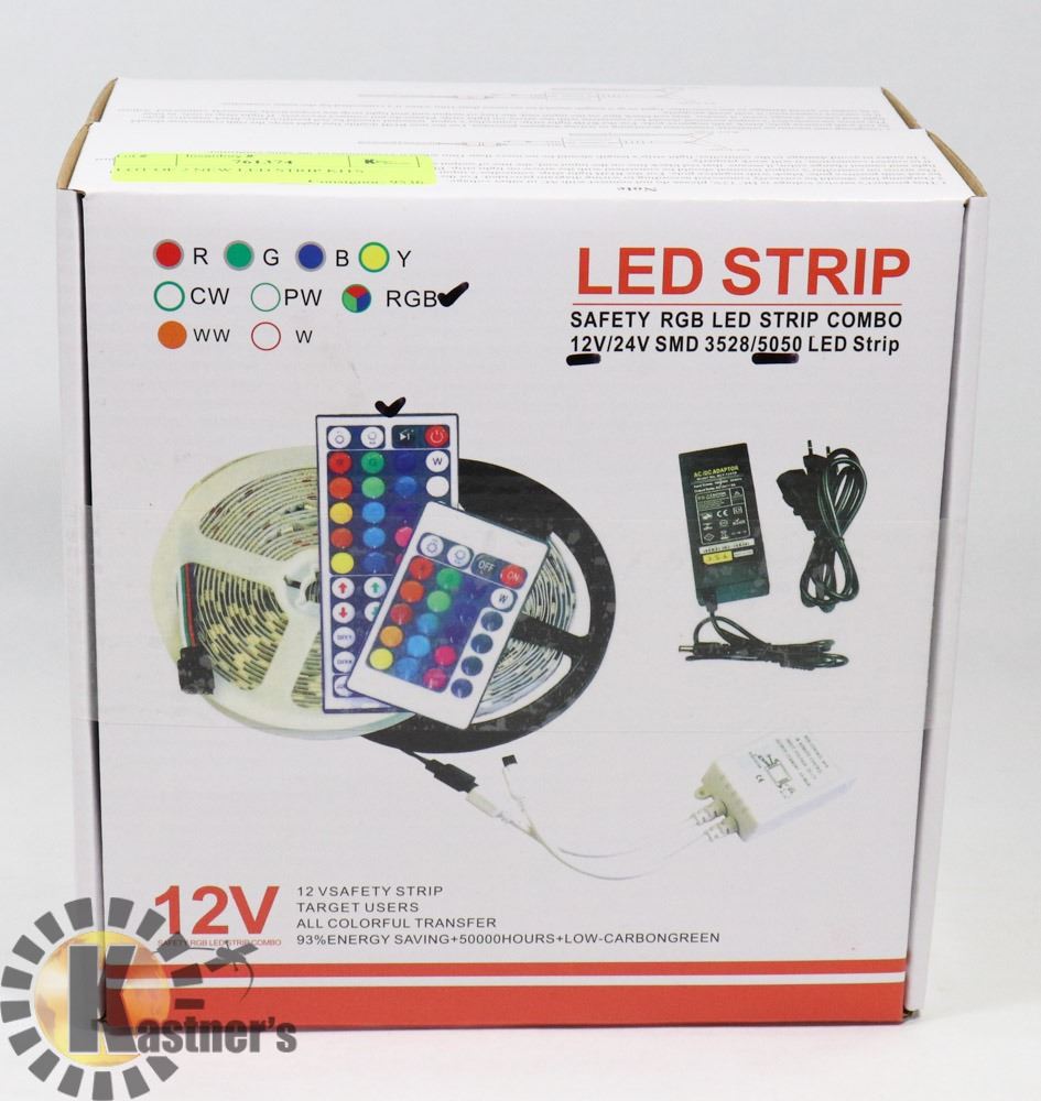 KIT 1-PLUG N PLAY.16.4FT/5 METER 60 LEDS/M RGB STRIP. IP65. 110V POWER SUPPLY. 20 COLORS. KIT 2- RV/AUTO 12V KIT. 5000K WHITE 16.4FT/5 METER 60 LEDS/M SMD5630. INCLUDES 15FT POWER WIRE, RF REMOTE CONTROL